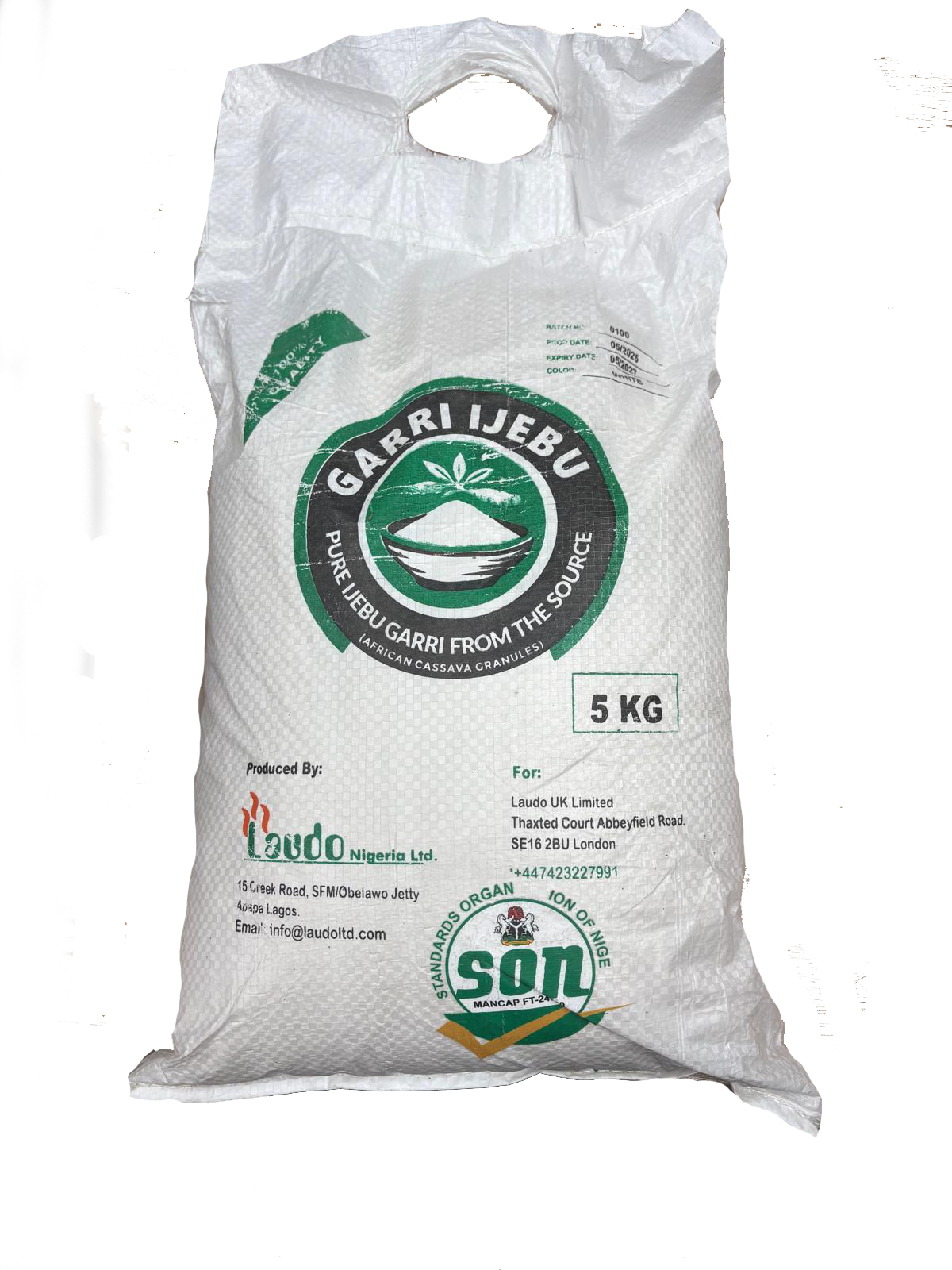 Laudo Garri Ijebu is a traditional Nigerian staple food made from grated, fermented, and fried cassava tubers, known for its distinct, pleasantly sour taste and fine, crunchy texture. Sourced primarily from the Ijebu region of Nigeria, it’s a versatile ingredient used to make dishes like eba by adding hot water or enjoyed as a cold drink with sugar and nuts. It is naturally gluten-free and can be a source of carbohydrates, fiber, and other nutrients